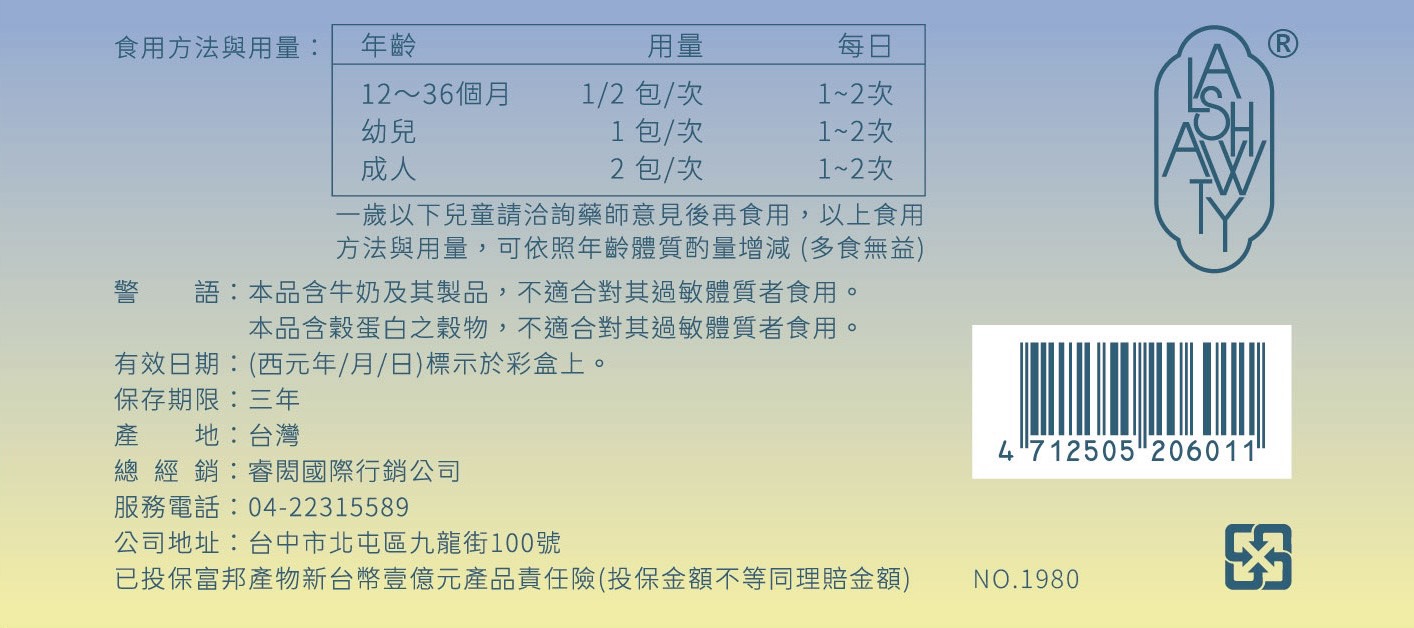 已投保富邦產物新台幣壹億元產品責任險(投保金額不等同理賠金額) 因【衛生管理條例法】規定,不得標示其功效,若需產品詳細說明,請利用客服留言或上網查詢,謝謝! |